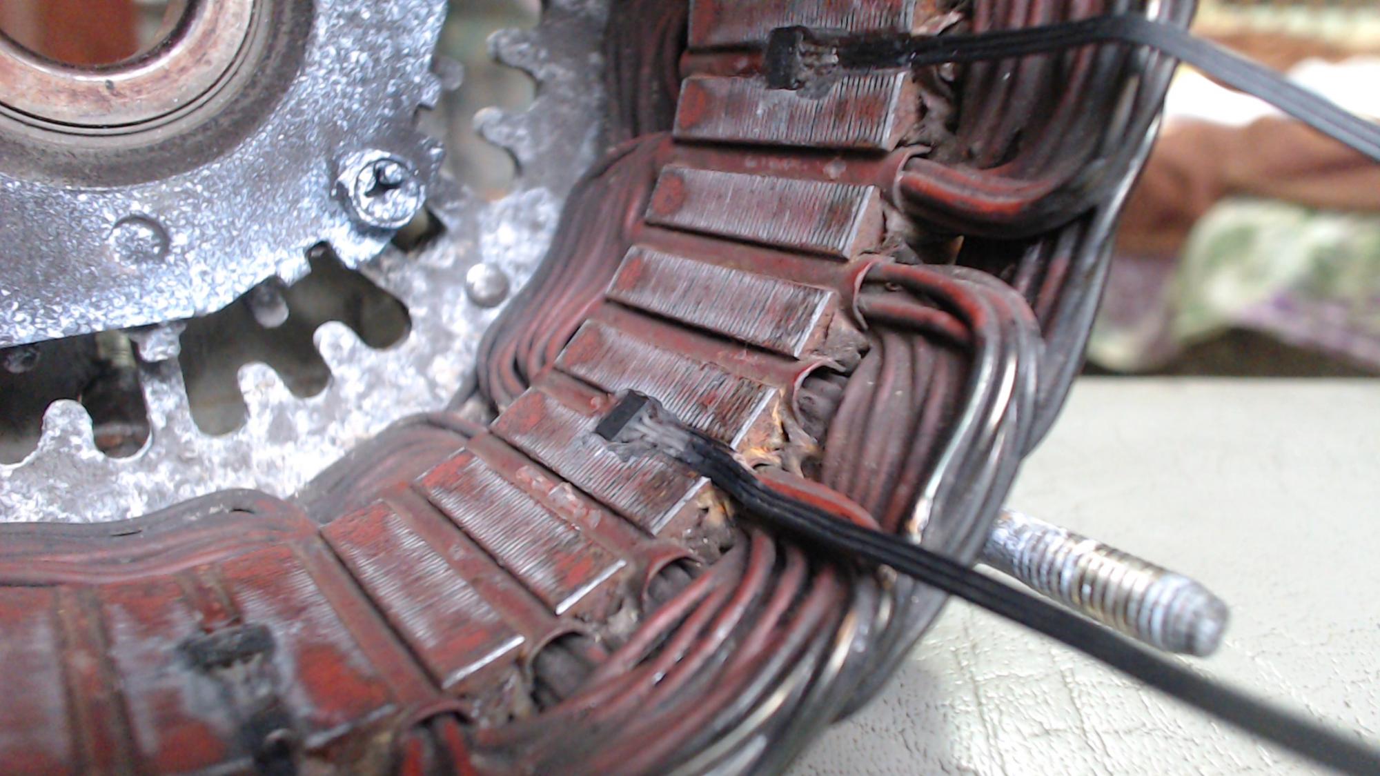 пришлось немного проточить проволоку , чтобы глубже утопить датчики, буквально поцарапал , думаю не чего страшного не будет , лишь бы я угадал по расположению холлов.