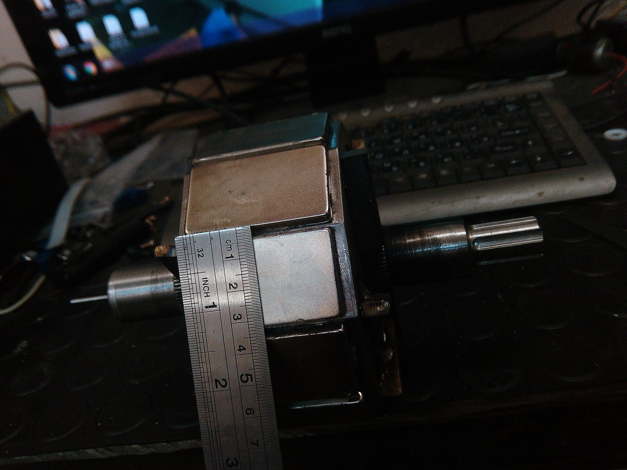Обратите внимание на воздушный зазор, он миллиметра три-четыре по центру магнита, хотя возможно и больше (толщина магнитов 4мм)