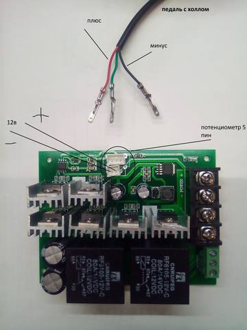 а вот здесь  пожалуйста поподробнее ! У меня два шим и третий с переключением  направления , педаль с холлами не работает !