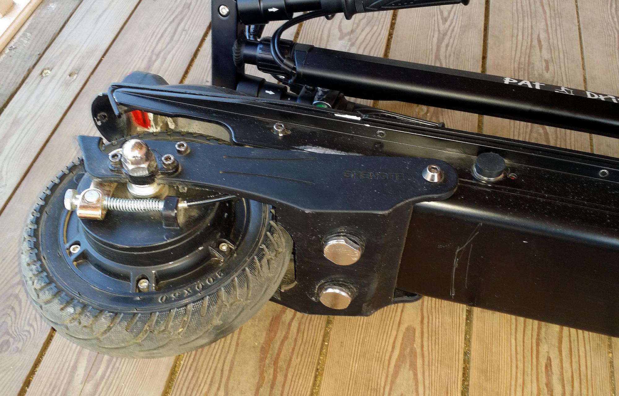 Проапгрейтил я свой китайский электросамокат Pat Drive S 350W (модель, как здесь обсуждают, но двухподвес) - включил рекуперацию, т.к. штатный задней барабанный тормоз весьма слабоват, а с рекуперацией самое то: