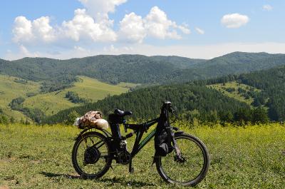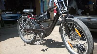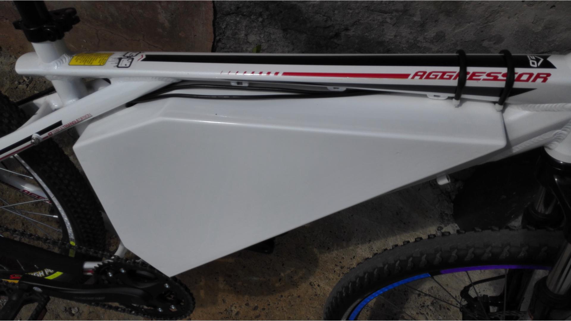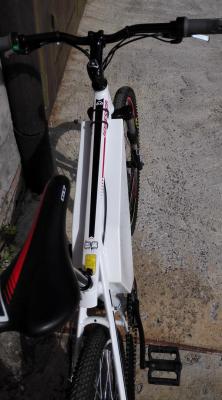 вот мой зверь, щас в переделке и скоро сзади будет мак, вместо гири на фотке :)  на богажнике запасная батарейка. замотал в пленку с пупырышками иначе долбится и трется как не притягивай...