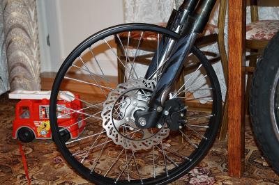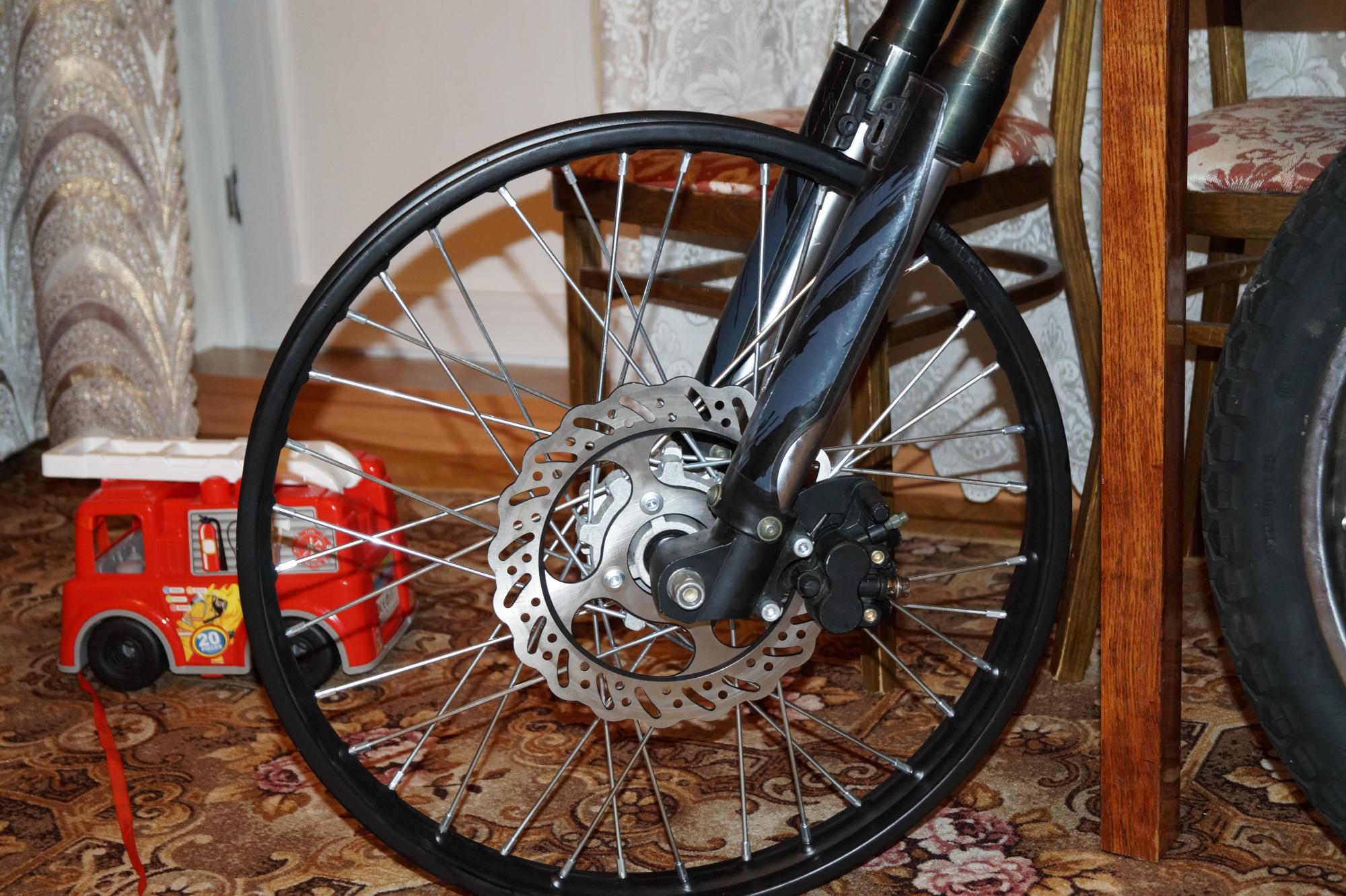 так и подумал, но надежда все же была, давно хочу заспицевать ступицу от питбайка в 18" мотообод. Это решило бы две мои проблемы, во-первых я бы смог установить стандартный тормозной ротор на 220mm от питбайка и смог бы избавиться от излишней громосткости переднего колеса и бонусом более точно отцентровать колесо относительно ног вилки.
