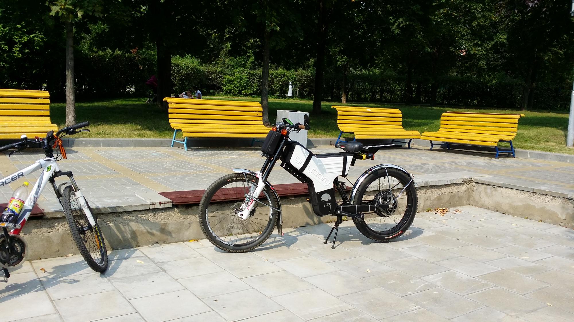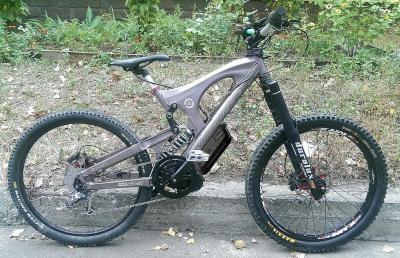 Спасибо) Характеристики не расписывал т.к. всё очень просто - мотор bafang bbs02 вкрутил в каретку, а акум панасоник 48в11,6ач в рюкзаке. Велик Santacruz V10 (240mm ход сзади и 180 в вилке), вес 23кг без акума. Макс скорость чуть больше 50, дальность - не знаю еще, не садил акум. Нравится ездить на самой большой звезде по полному бездорожью, где мотор-колесо не тянуло. По асфальту мотор-колесо всё же считаю более удобным, т.к. миддрайв и велосипедная система переключения передач - это по-моему неудобно.