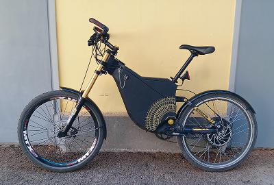 1) Двухподвес, mid-drive Bafang 1000W+редукторник 350W, Li-ion 5х12Ah 58.4V, max 53 км/ч. Дальность 120-150 км без педалей.