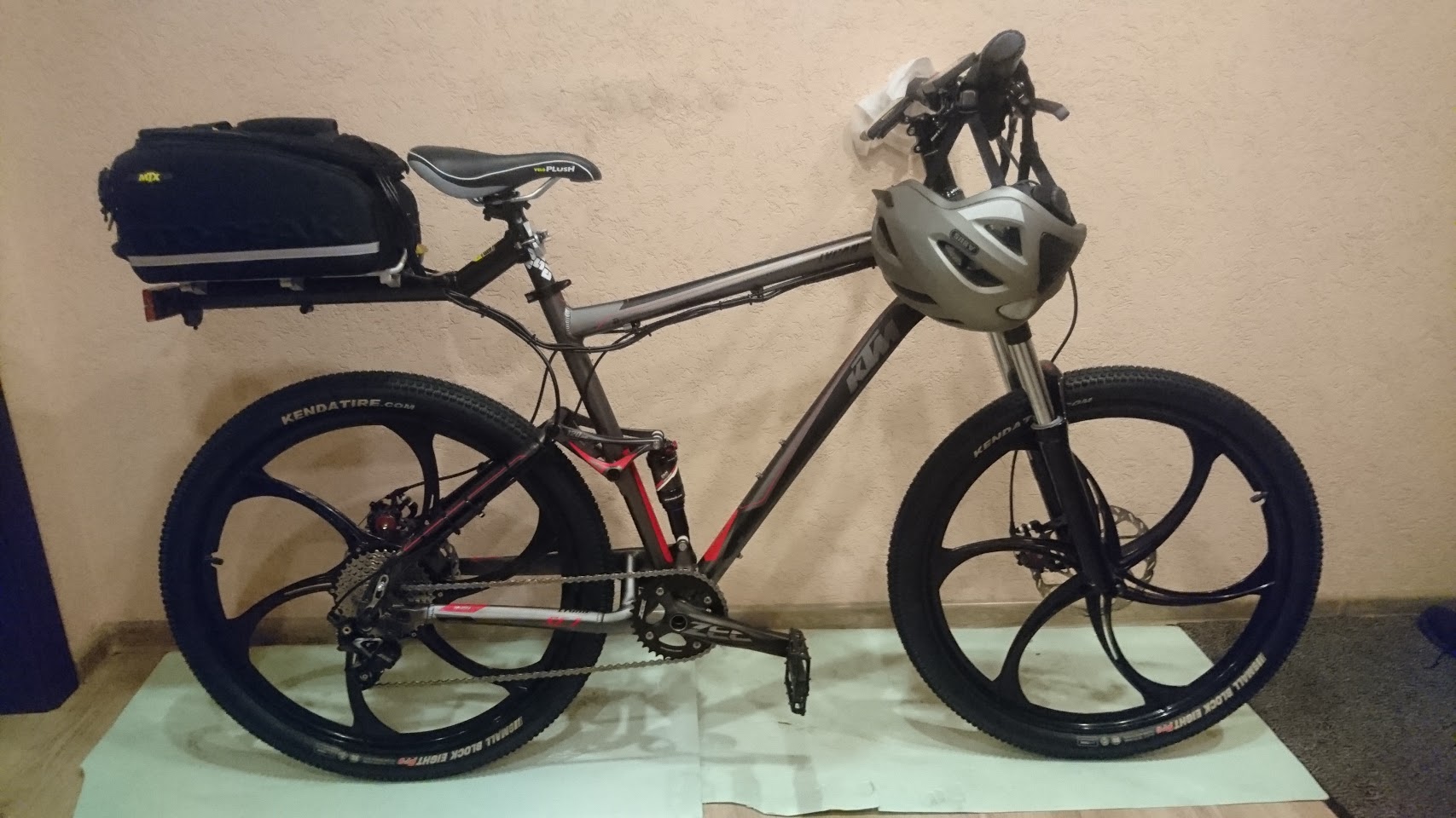 консольный багажник topeak заявлен на 9кг нагрузки, акк 4,6, контроллер там же парится пока. подседел мощный даунхильный Truvativ Hussefelt.