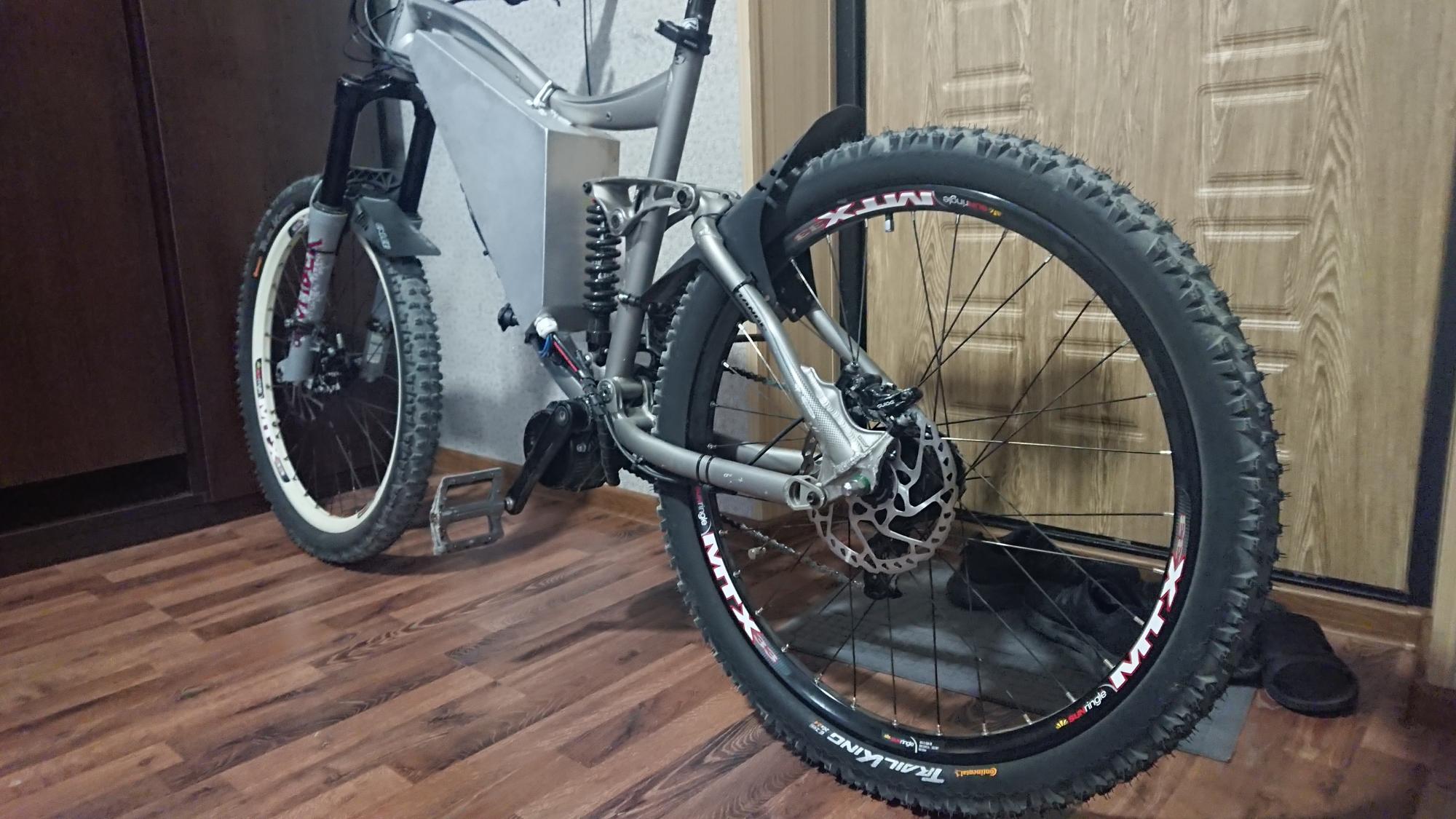 Рама Норко рендж 2012 (на удивление,новые подшипники для подвески нашел в одном месте), 160ходов (куплена новая вилка РШ боксер (ход 200), но возникли проблемки, пока лежит), родной воздушный аморт считал, что отскок это роскошь, потому был заменен на DNM, работает отлично. Мотор остался старый, bbs 02, работающий на  планетарку Алфайн 8ск.