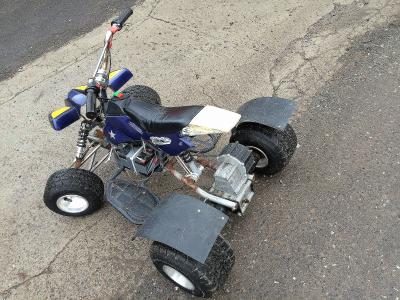Здравствуйте ВСЕ! У меня также умер движок на детском квадре, аналогичном фото выше... Двигатели там откровенно сырые и связываться с поиском и прилаживанием чего-либо подобного не хочу. Поэтому и мониторю тему на предмет переделки бензинки в электротягу. Задумываюсь о 48 В 500 и более вт с сайта клуба карманного транспорта, при этом бюджет вылезает за 1000 зеленых америкосовских рублей!!!! :neg: :neg: :neg: Печально :ireful:    Однако- сам мотор, батарея, контролер, зарядка.... туда-сюда....  а 30000 рублей маячат...  Дело не только в жабе, а может я слишком заморачиваюсь??? Может и не надо для шестилетнего ребенка ТАКОЙ мощи, аккум - тут никуда не денешься, на нем экономить не стоит, больше емкость - дольше едем и дольше служит, а вот мощность движка - какую оптимально выбрать???