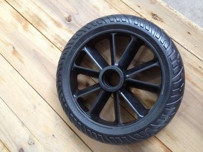 Фото двух E-TWOW, на одном из котором из которых установлено надувное колесо от самоката Micro Flex Air.