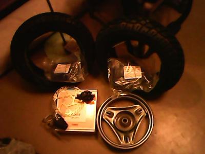 Зато купил внедорожную резину 3х10" для переднего колеса и 3,5х10 для заднего и камеры к ним (хотя они бескамерные).