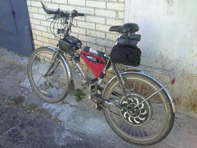 Полный привод . Задний DD Magic Pie-2 , передний редукторный Бафанг . АКБ-литий-титанат 48V 10Ah самосброка , ячейки Ю/Корея .  АКБ-лифер 36V 12Ah самосборка , ячейки-ЛЯО .