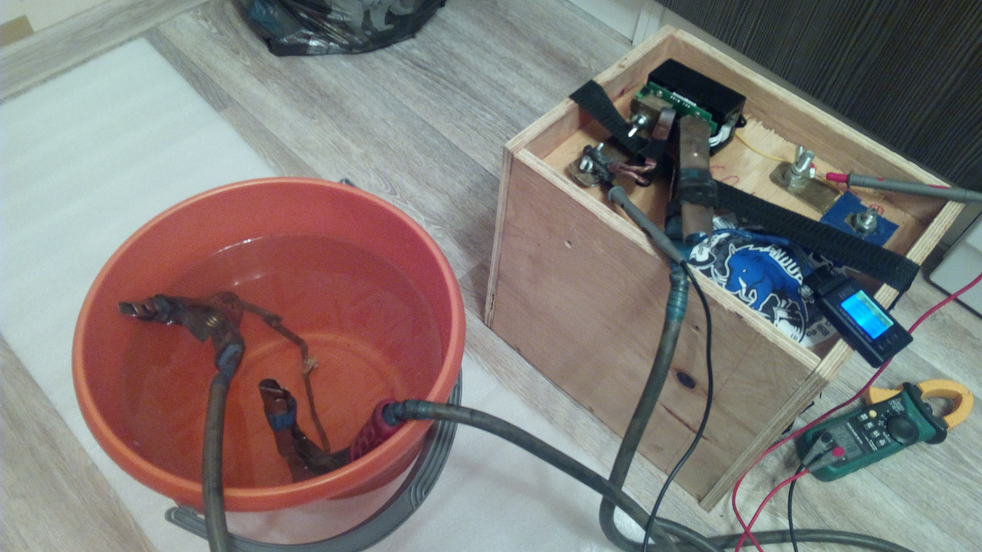 Устройство ваттметр vac4300a,  а нагрузка - спираль от нагрузочной вилки,  погруженная в ведро воды :)