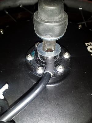 Ещё раз повторюсь: поищи - где-то была тема про изготовление шайбы (ты её называешь втулкой). Эту черную пластмаску я выкинул и сделал из алюминия толстую шайбу, в которой просверлил и "доработал напильником" отверстие-канал под провод. И теперь получается, что шайба-втулка защищает провод (где-то прижимает к оси, где-то образует защитные стенки) в самых опасных движущихся-вращающихся местах: