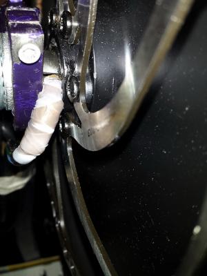 И вот ,что получается - Провод выходящий из оси впритык выходит к дропауту и находится в опаснейшей близости с крутящимся выступом боковой крышки  :bn: