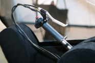 Сверху рычаг при передвижении которого взад-вперед поднимается-опускается  вилка вместе с колесом. При этом констракшен наклоняется и поворачивает.