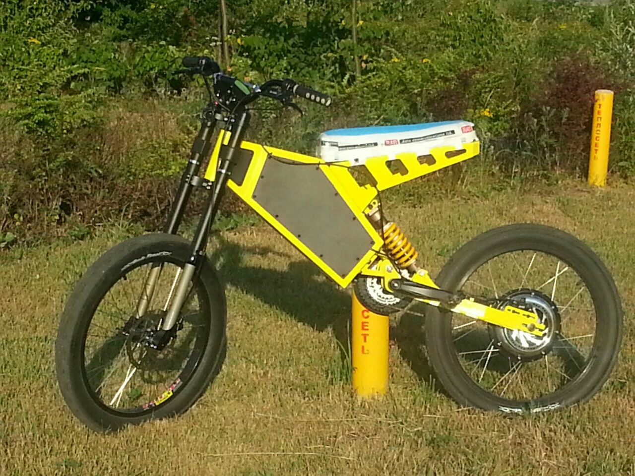 Универсальность платформы заключается в том, что допускает использование при сборке как вело компонентов, так и мото ( например от Пит-байка).