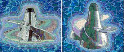 Но что интересно. Если у данного винта ограничить обороты до начала кавитационного срыва, и поместить его в трубу на манер водомета,  то получается неплохая тяга. По крайней мере гораздо выше, чем у любого детского буксировщика.