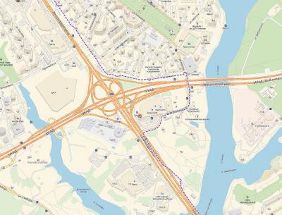 Далее по улице Светланова ( смотрите по карте ) более менее удобно доехать до новых корпусов МГУ и переехать на Воробьевы горы .