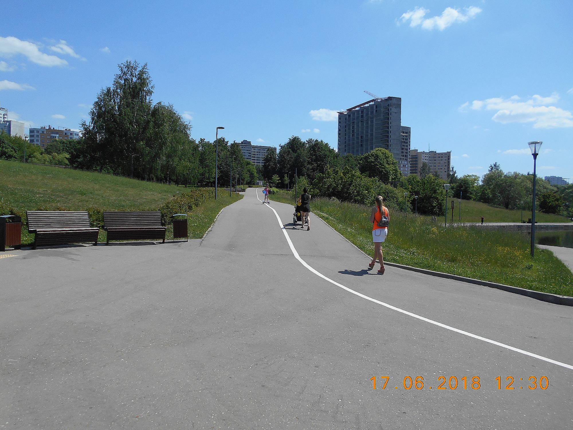 Я доехал до платной дороги , там благоустройство заканчивается . Можно попробовать прокатиться по всей набережной вдоль канала до платформы Водники ( Сав.ж.д.) . Дорога судя по всему там нахоженная , люди вдоль канала идут  ,но скорее всего неблагоустроенная как в этих двух парках .