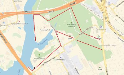 Далее Химкинский лес , дорога к платформе Левобережная и в сторону к парку Левобережный .