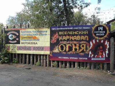 Переезжаем по нему и чуть вперед направо , по дороге попадаем в городок каскадеров " Сетуньский стан " . Территория свободна для посещения .