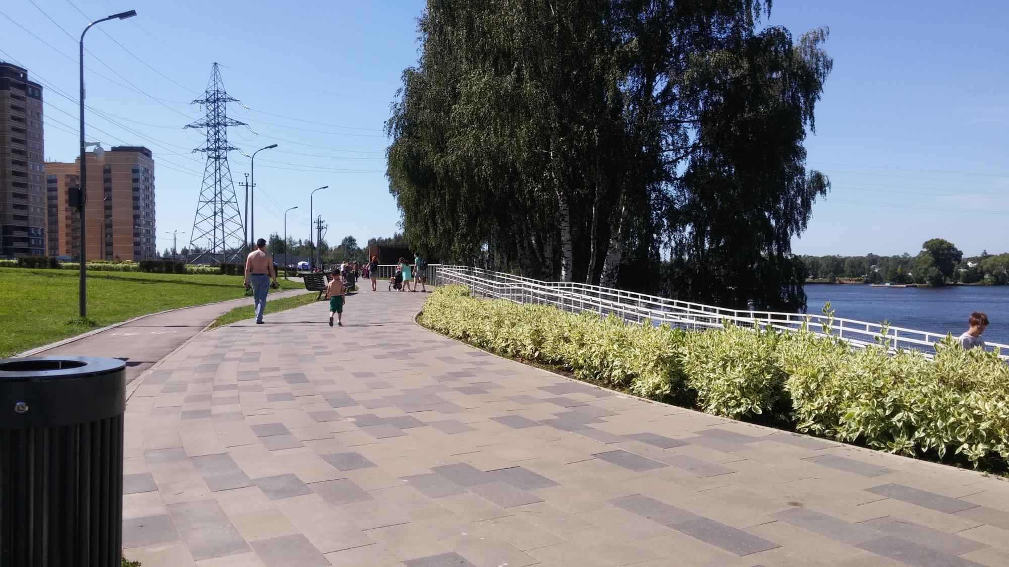 По дороге заехали на пляж, поплавали. Ехали не спеша, экономил батарею, да и первый раз на маршруте, смотрел по сторонам. Яхт-клубы, крутейшие дачи, некоторые похоже правительственные (3-4м забор, тарелки спутниковой связи), леса, водоемы с яхтами, теплоходами. Дорожки конечно не сравнить с московскими, но все проезжаемо. Нести колесо по-моему пришлось только раз с лестницы. По шоссе старались не ездить, но местами приходилось, но везде есть широкая обочина, да и участки небольшие 100-300м.