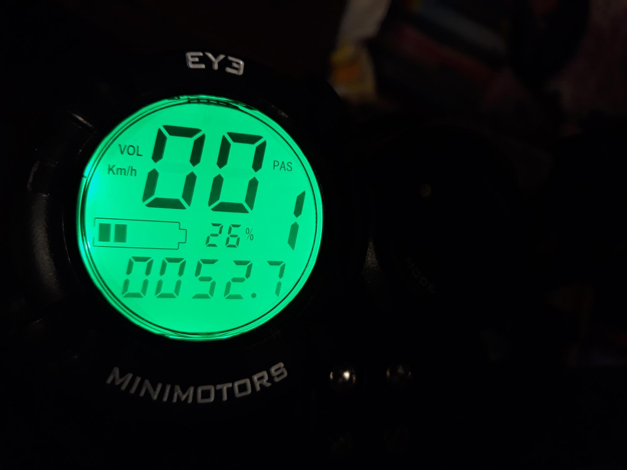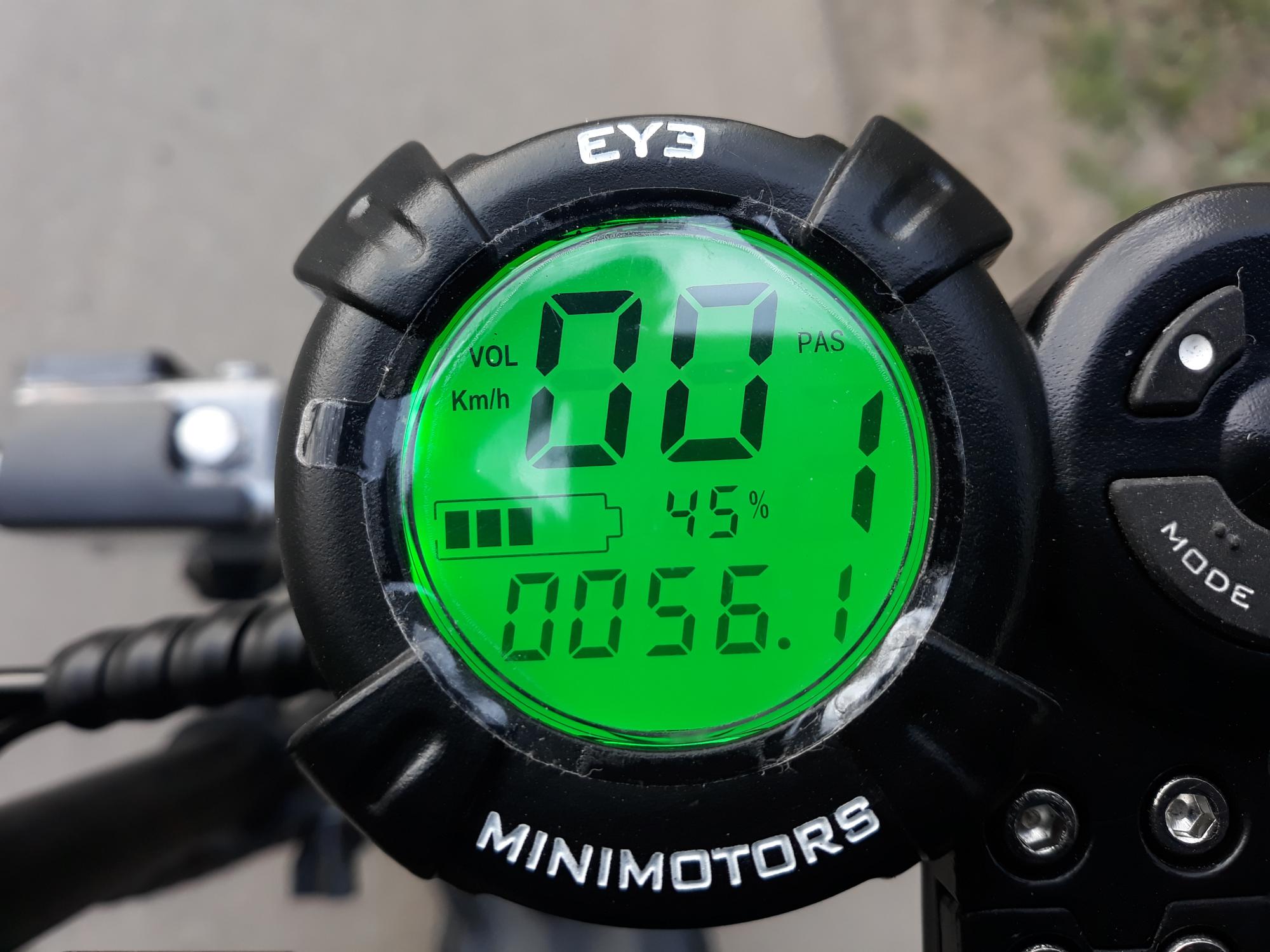 Меня пробег тоже радует. Езжу сейчас в среднем режиме, на работу-потом чуть прокачусь после. Р7-2, Р9-2 настройки. Когда длинные прямые не стесняюсь разгоняться до 50-60 км/ч. На одной из покатушек после работы разогнал 66 по курку. А так в основном в Эко Дуал гоняю, Турбо - когда дорога прямая. Проехал пока с последней зарядки 51,3 км, остаток заряда 58,7 Вольт. Этого ещё хватит ого-го...