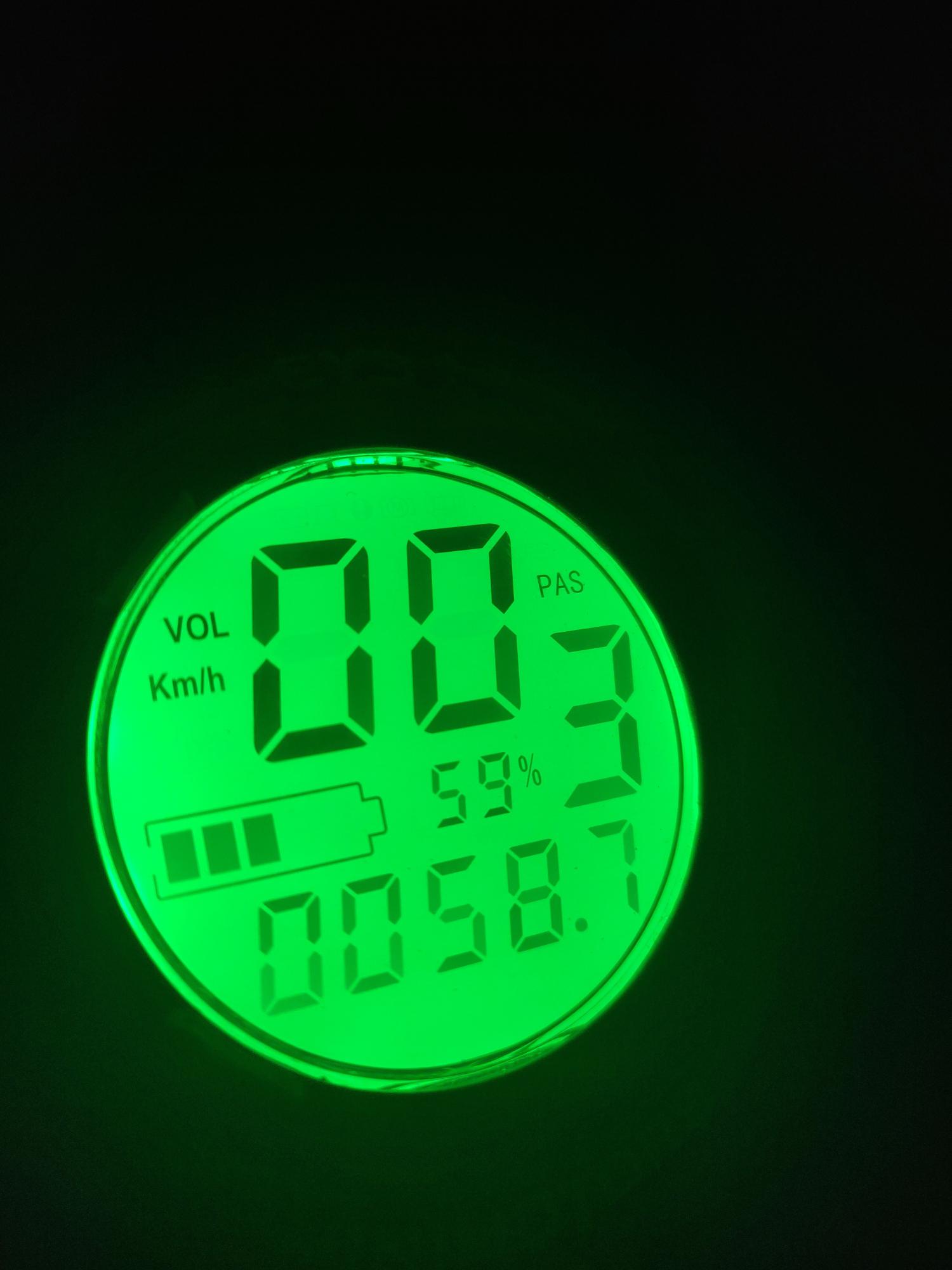 Теперь интересное.Когда гонял под сорок при опускании напряжения, до 49.9 вольт и ниже начинает мигать дисплей, но ничего не отключается, самокат едет как и ехал. Удалось добиться просадки во время езды на 40км/час до 46 вольт, при этом погасло последнее деление и светилось 11%, но самокат продолжает ехать, курок отпустил слегка опять 50 вольт и 1 деление светится, вырубиться ему не дал,домой вдруг не доеду. Думаю ориентир 45-46 вольт как на фото контроллера.Еслиб не гонял наверно проехал бы 120 точно, просто терпения уже не хватило.Домой в квартиру завез показывать стало