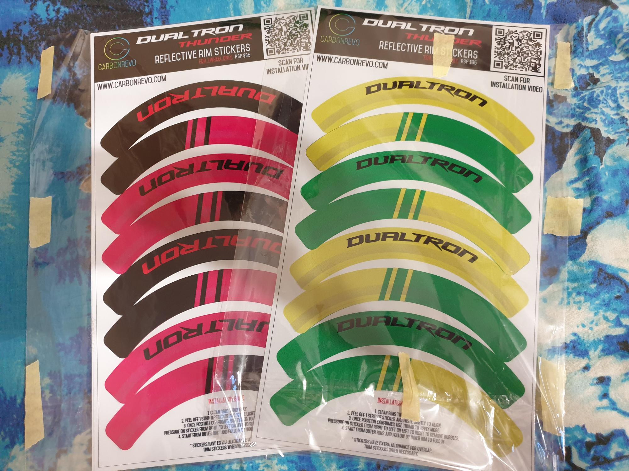 [user]witbk[/user], могу запаски carbonrevo отдать, вряд ли они пригодятся, так как со стикерами ничего не происходит. Два листа лишних (по одному на колесо), только обода будут разных расцветок (black/hot pink + green/yellow) и поворота надписи (inwards/outwards). Для ободов DT, но как выяснил на практике походу они для ободов D3/SW5 больше подойдут, чем заявленные под 10" дуалтроны (их при поклейке стык в стык не хватило обод покрыть на 2см (видимо обода LTD и прочих от ободов D3 отличаются), а DT даже обрезать можно или внахлест, как я и поклеил)...