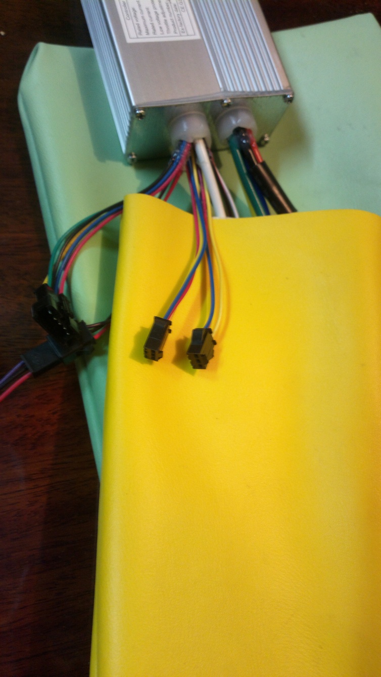 ясно, те разъёмы, что на спидометре я тоже замотал сильно очень изолентой и примотал всё к раме, что б туда пока грязь не попала и вода всякая. Контроллер пока не крепил он отдельно лежит его могу сфоткать и все разъёмы на нём.