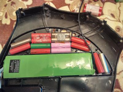 В прошлом году я примерно так-же увеличил батарею в своем экстриме. Купил 14 новых батарей.  Родные батареи не потрошил, а только снял наружную синюю пленку и допаял по одной  батарейке к каждой паре.  Уложил все так что бы не болталось при езде.  Конечно дополнительные провода внутри появились.  Теперь катаясь сил и терпения не хватает посадить батарею до минимума.  Сделанной работой доволен. Правда колесо почти на кг тяжелее стало.