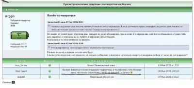 Цитата: serggio от 08 Май 2020 в 07:29было бы неплохо разобраться с теми сообщениями которые особо продвинутые товарищи оставили в карме других пользователей. Явно напрямую оскорбляя как того кому это написано, так и других участников через карму своих «друзей».