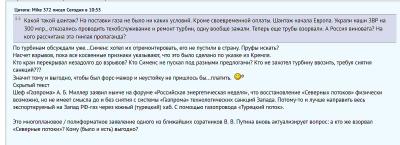 В следующем посте, в рамках дискуссии, я привожу ссылку на авторитетный ресурс РБК, который спокойно заявляет, что Сименс действительно хотел вернуть турбину, да не смог, ибо Газпром не присылает нужные таможенные документы, вот пруф  https://www.rbc.ru/politics/25/07/2022/62ded7799a79470c921e4d60