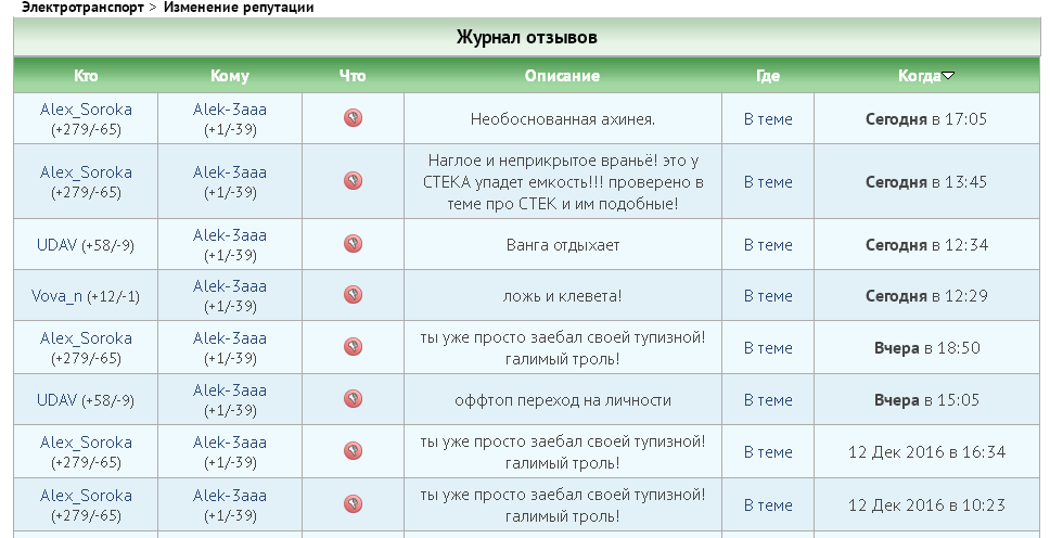 На счёт Сороки и "Репутации" - это вообще цирк. Я на Форуме больше "читатель", а не "писатель". Не единожды замечал как формируются ряды "Секты" - Сорока и его сектанты щедро раздают плюсики явным "кандидатам" в её ряды, даже за сообщения, не несущие полезной смысловой нагрузки. Ничего удивительного: [user]Alex_Soroka[/user] - Предводитель секты, а Модератор раздела "Свинцовые аккумуляторы" [user]UDAV[/user] - Духовный наставник секты. Не стесняясь у себя на аватарках даже написали об этом. При таком "семейном подряде" в данном разделе на корню душатся неугодные темы для разговоров. Кто Форум читает давно - ему понятно кто есть кто, и на сколько чьим словам можно верить, а что делать новичкам? - они ведь слепо верят "наставникам", а если ещё у новичков "багажа знаний" нет...