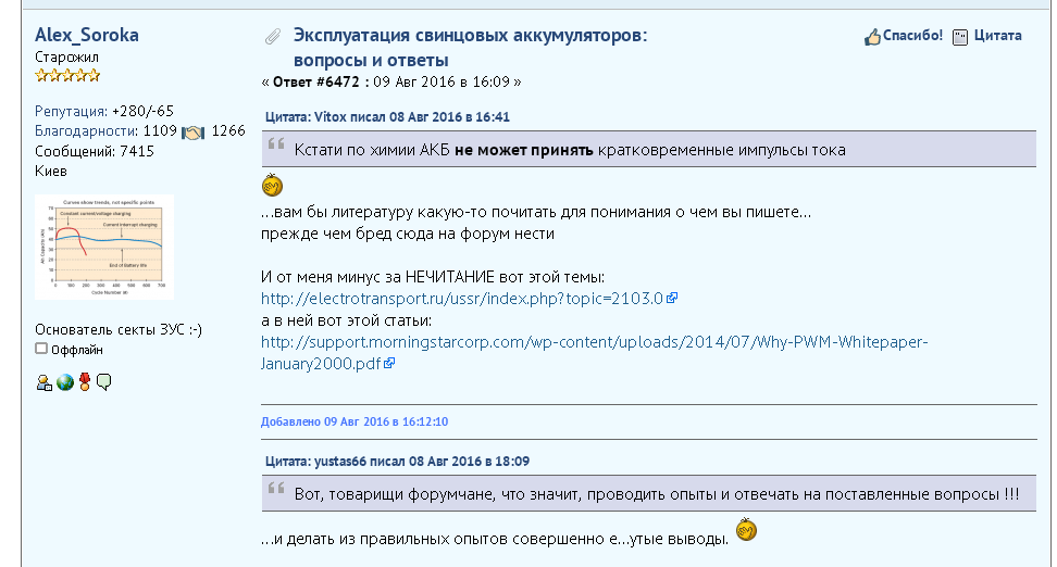 Мне совершенно не понятно с чего вы сделали вывод что я его поддерживаю как модератор.   Это проблемный юзер, который доставляет мне много хлопот и лишней работы, и его постов я тоже удалил не мало.       Его  ЗУ и методы заряда  в моей личной практике показали себя лучше чем все что я до этого  собирал и использовал самостоятельно, это да,    но модерации это не касается, я разделяю такие вещи.
