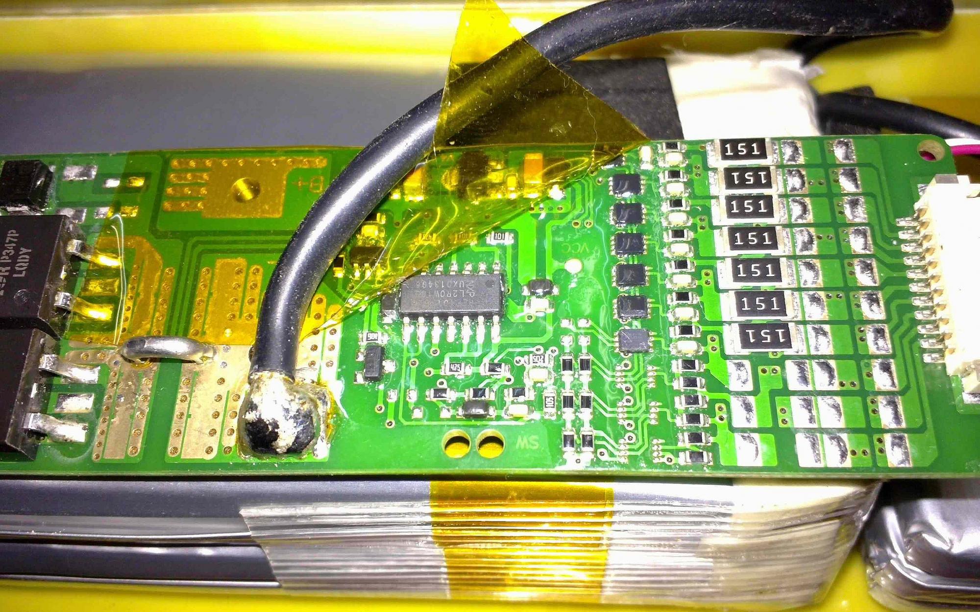 На штатной батарейке 6,5Ач стоит такая БМС: