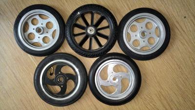 Протестировал первым колесо, которое не заказывал. Показал колесо сегодня в крепмаркете будущему владельцу S2 самоката, которого случайно встретил. Вспененная резиновая шина на алюминиевом диске от пневматики. Вес колеса в сборе 497 гр без оси и подшипников, для сравнения родное ПУ весит на 100 гр больше.