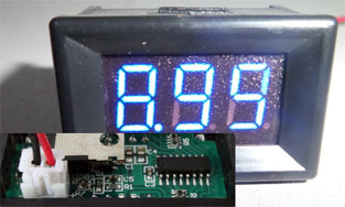 Еще нашел вольтметр "epsunk-01" точно под нашу панель, не залитый компаундом, с возможностью разделить экран и платку. Не требует доп питания. Размер 0.36". DC 7-150V 4 цвета индикации.