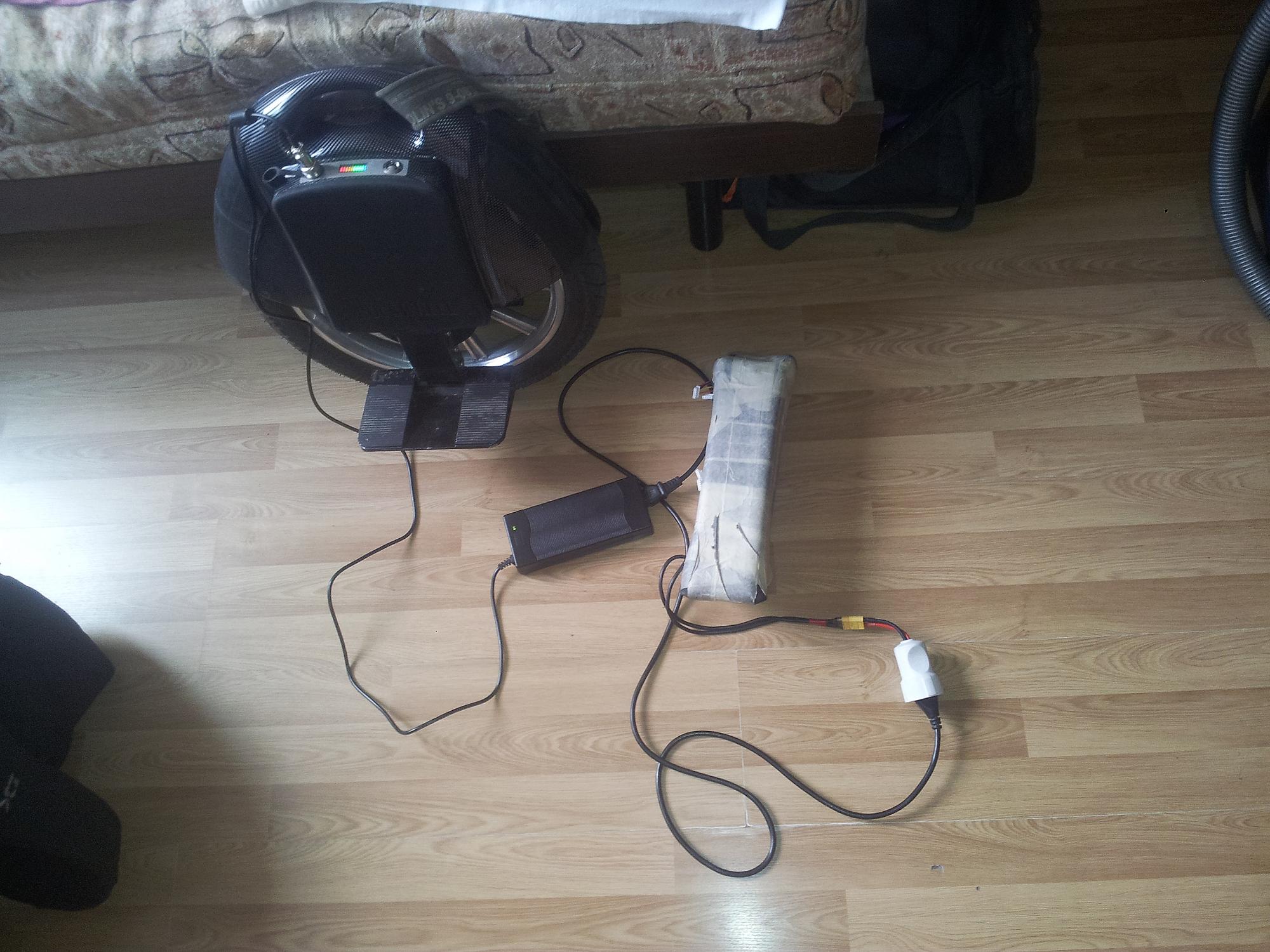К вопросу об увеличении дальности пробега: в соседнем форуме про унициклы https://electrotransport.ru/index.php?topic=23701.msg477984#msg477984 протестировали схему зарядки встроенной батареи при помощи родного зарядного устройства от внешней батареи на 57+ вольт. Может быть, пригодится кому)