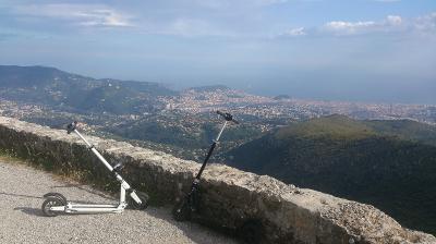 Самокат реально удивляет. 800 метров вверх (14 км), обгоняя задыхающихся велосипедистов, затем столько же вниз и еще остается 60% на дисплее, еще км на пять-семь хватит. Рекуперация рулит!