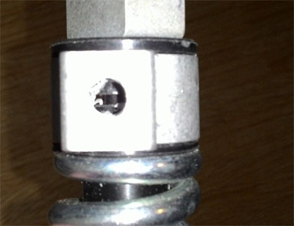 Сначала я побоялся его раскручивать, так как когда самокат был новый,то без тисков пружину обратно не поставишь, но рискнул и был удивлён: пружина на гайку уже не давила, то есть за триста с небольшим километров она просела. Всё замечательно открутилось, стал искать причину...