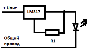 В простейшем варианте с одним светодиодом выглядит так: