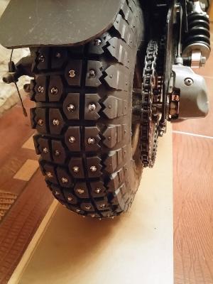 Я зашиповал BESTGRIP 1000. Отлично держат лед, укатанный снег. Едет как по рельсам. За две зимы не потерял ни одного шипа и упал только раз, когда резко затормозил передком - через руль вбок. Хорошо на небольшой скорости и без последствий. После этого торможу осторожней и держу дистанцию за машинами.