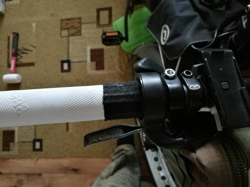 Но минус в моем случае это то что большой палец находится сверху руля и обхват грипсы рукой как бы небезопасен, рука запросто может уехать вперед, соскочив. Да и палец быстрее на текущей температуре мерзнет.