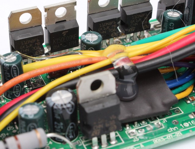 Еще момент, если делаете отдельную плату с транзисторами - драйвера тоже переносите на нее. Соединение затворов с драйверами проводами лучше не делать. А если делать, то макс короткими и в пару квадратов.