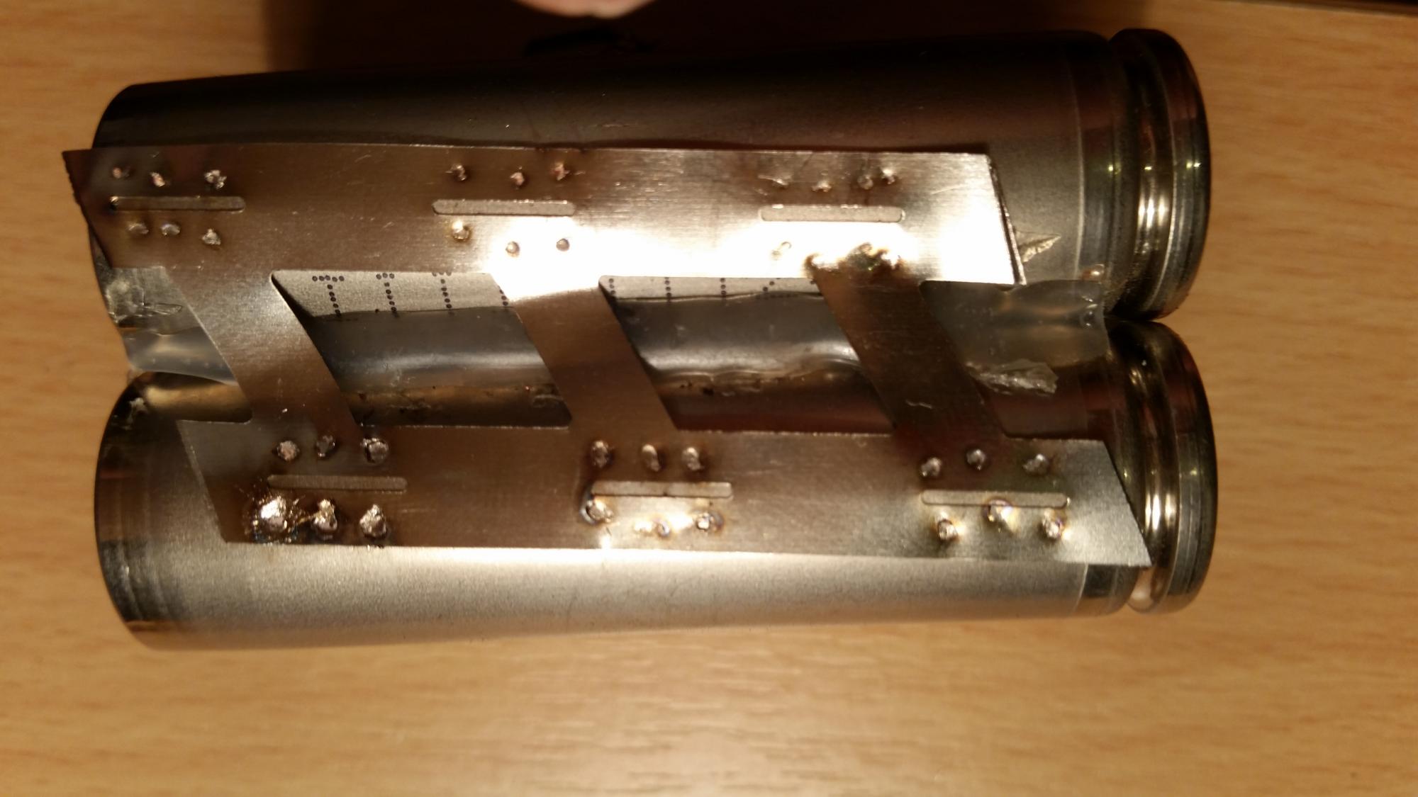 [user]acyd[/user], а я свой прока не протестил. В моем вторичка 115 см2 намотана как раз медной шиной, только не одной, а тремя, гибкость в таком случае немного лучше. В качестве электродов взял 9 мм штырь заземления и клемы к нему. Если не подружусь со стандартным контроллером, нужно будет выковыривать транс из сварочника.