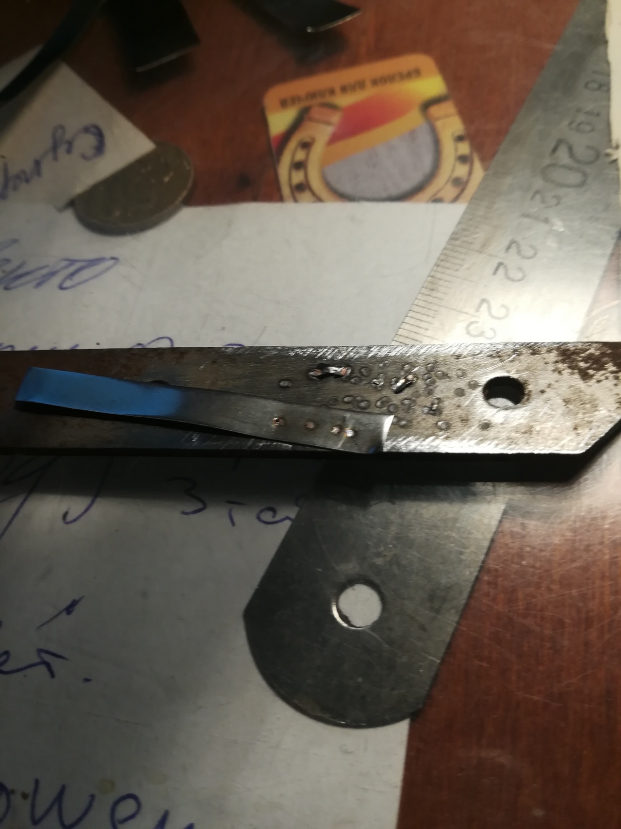 По поводу ослабления давления при сварки...Все таки решился еще приварить по 4 точки. Всего стало 8.  Варил так: сначала прижимаю электроды примерно 6 кг (приминаю контакты), потом отпускаю давление до 1-2кг и жму на педальку. Искр стало как будто меньше, визуально сварка осталась такой же.