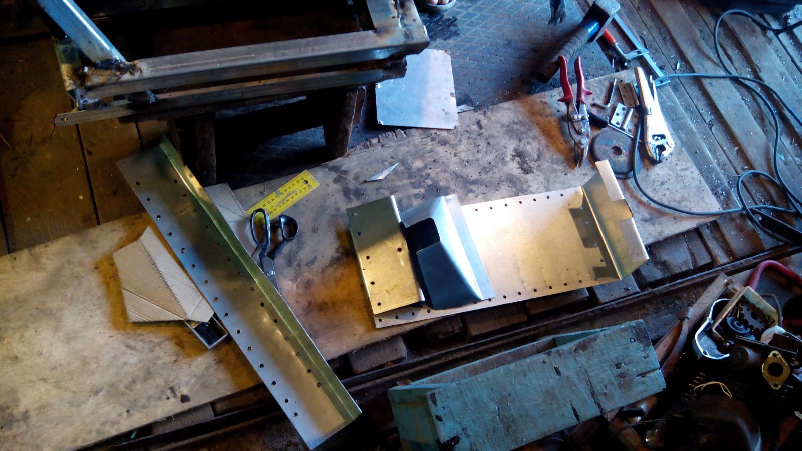 4. Рама полностью самодельная. Сварена из оцинкованых уголков и обшита оцинкованым стальным листом 1.2 мм. В передней части использован механизм складывания от "Аиста"
