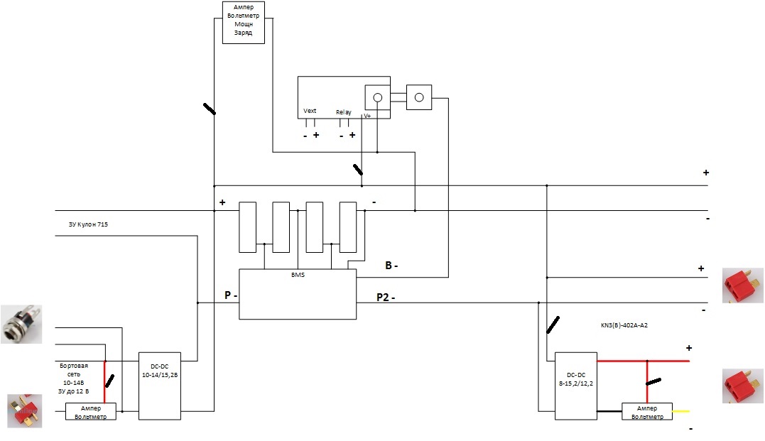 Это цепи BMS. Таким подключением я хотел контролировать весь ток протекающий на АКБ, включая служебных потребителей.