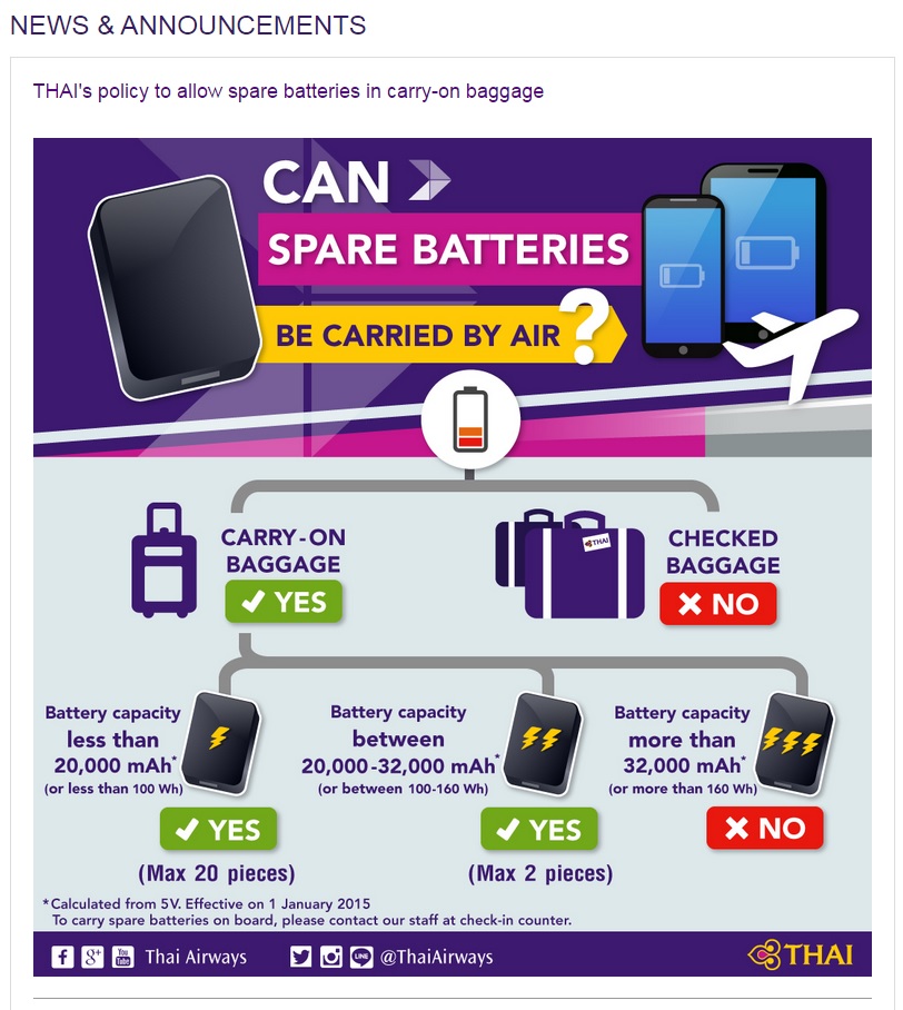 Простая и четкая инструкция Тайских авиалиний относительно батареек, ну если кто в тай захочет колесо взять