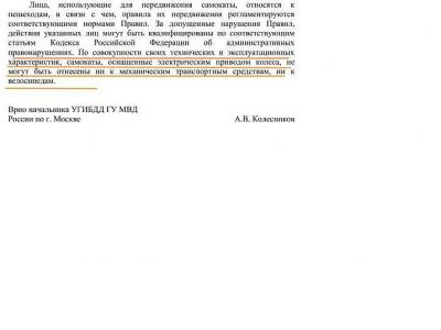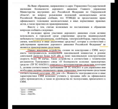 Еще раз говорю, давайте не будем тиражировать фейки. К тому же с расплывчатыми фразами. Про электросамокат или устройства конкретных мощностей никаких комментариев нет.